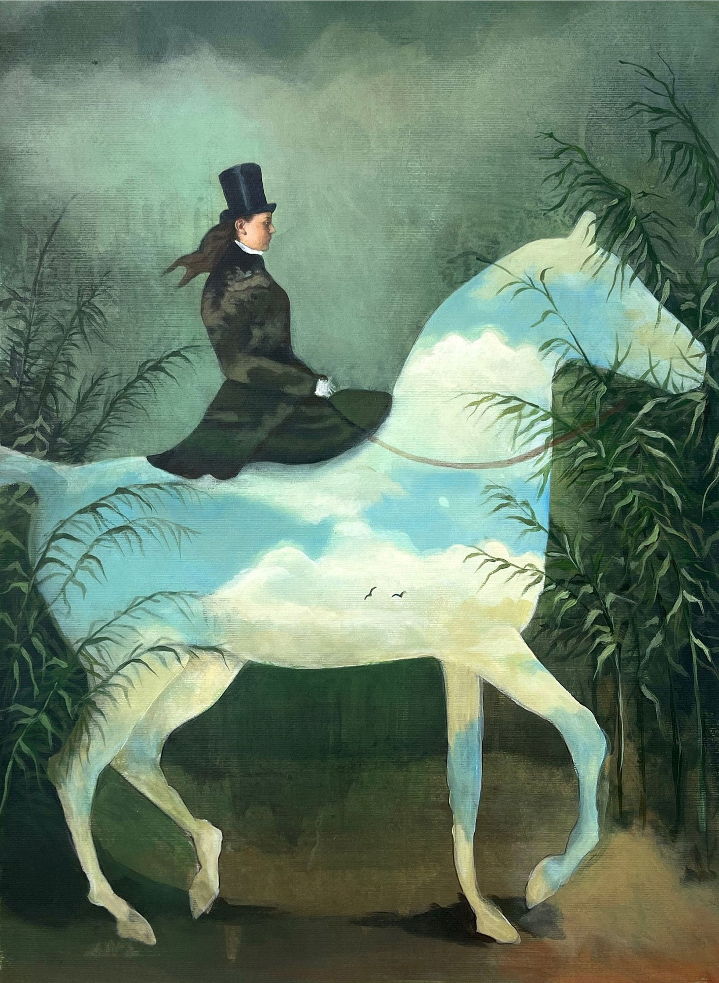 The rider knows exactly where she wants to go in the midst of the surrounding forest. Or is her mind wandering somewhere else entirely?